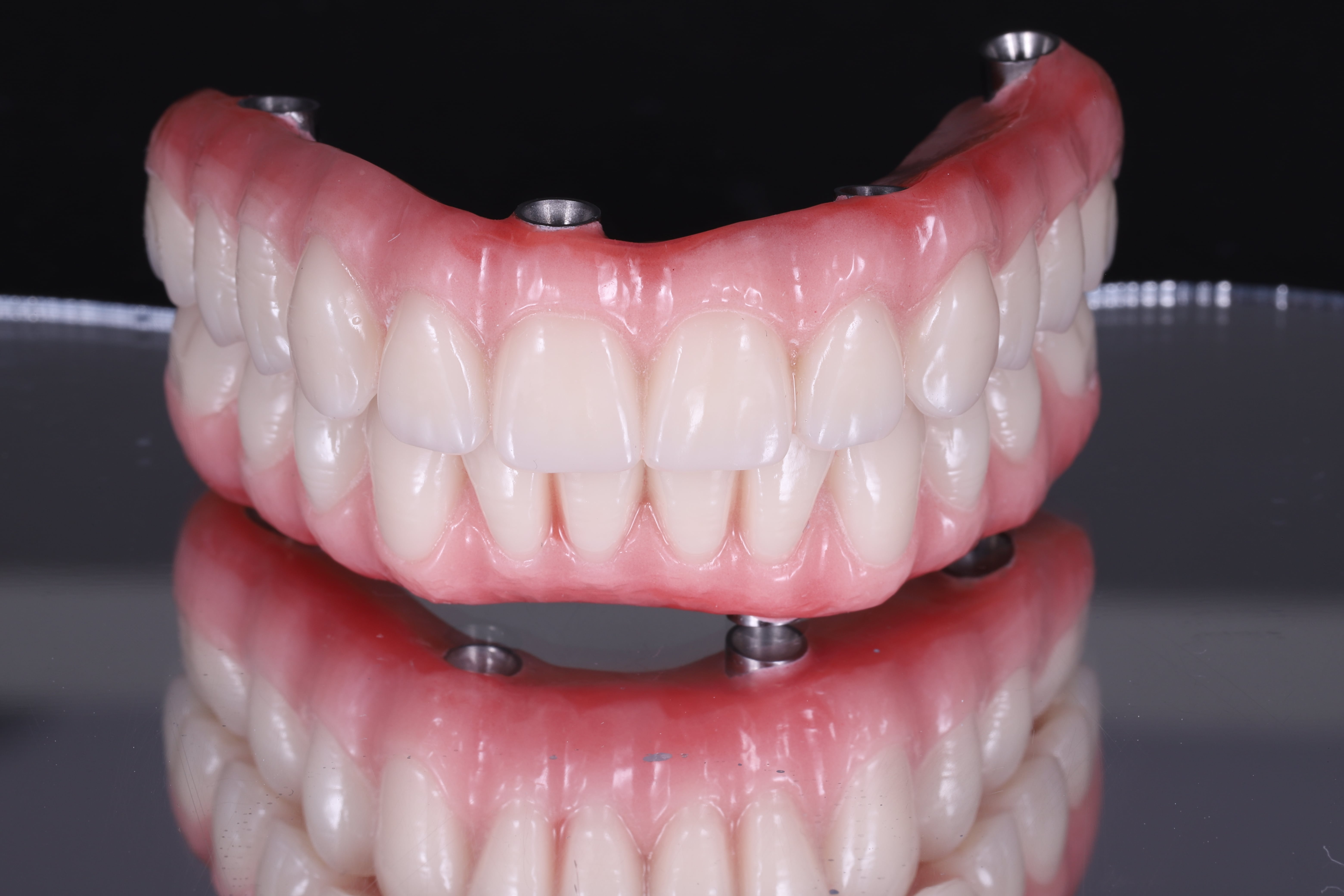 All-on-4 (имплантация на четырёх имплантах) – самый популярный современный вид протезирования при полной адентии. Плюсы данной конструкции – возможность немедленной нагрузки сразу после установки, удобство использования и эстетичность. Специалисты нашей лаборатории готовы выполнить все виды протезов All-on-4, в том числе: акриловые, цельно-циркониевые, цирконо–керамические, металло–композитные и металло–керамические.