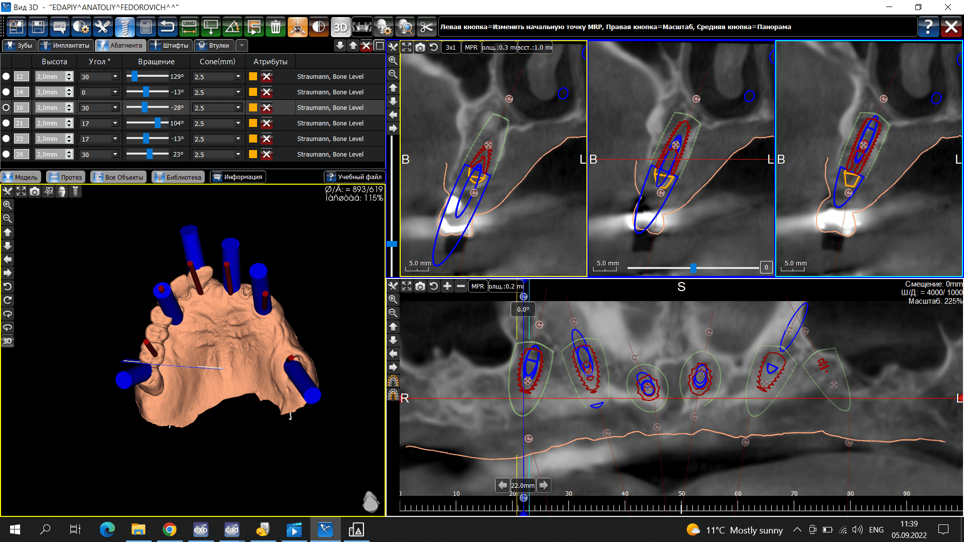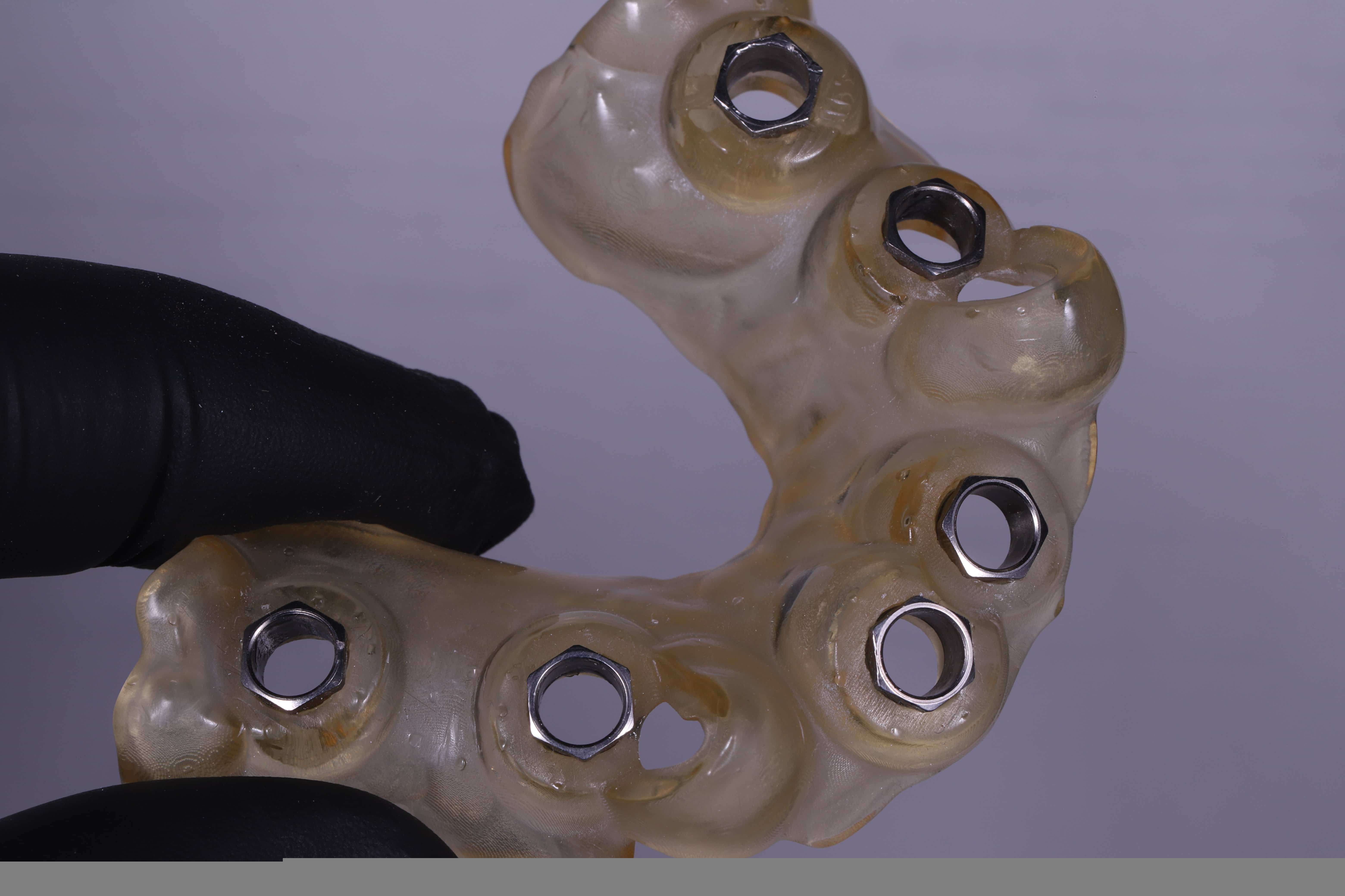 Необходимый материал для работы врача, когда при протезировании нужно максимально точное размещение импланта в кости с правильным определением глубины и угла наклона. Таким образом исключаются ошибки, вызванные «человеческим фактором». По желанию клиента, изготовим хирургический шаблон с комплектом временных коронок для немедленной нагрузки. При заказе шаблона будут необходимы оттиск или цифровой оттиск в формате stl-файла, КТ и все параметры хирургического набора.